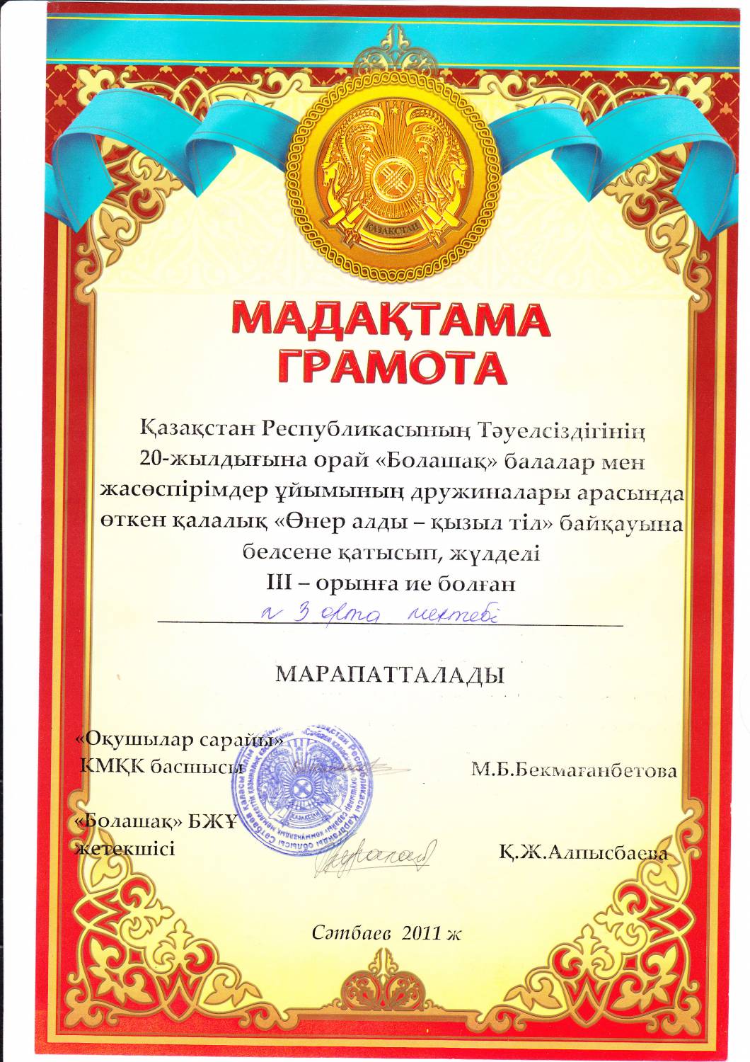 №15 орта мектеп Сатпаев қ.